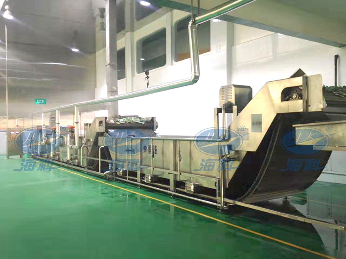 在食品、飲料、制藥等行業(yè)中,要求對(duì)一些包裝完畢的產(chǎn)品進(jìn)行水浴式滅菌,被包裝好的產(chǎn)品放在可調(diào)速的不銹鋼網(wǎng)帶上,在傳遞帶的作用下按順序進(jìn)入滅菌箱體內(nèi),經(jīng)由“高溫水為介質(zhì)”殺菌后,再由傳送帶帶入箱體均勻冷卻,從而達(dá)到產(chǎn)品殺菌要求。殺菌、冷卻機(jī)連續(xù)運(yùn)轉(zhuǎn),已滅菌的包裝產(chǎn)品被源源不斷送入下一生產(chǎn)線。