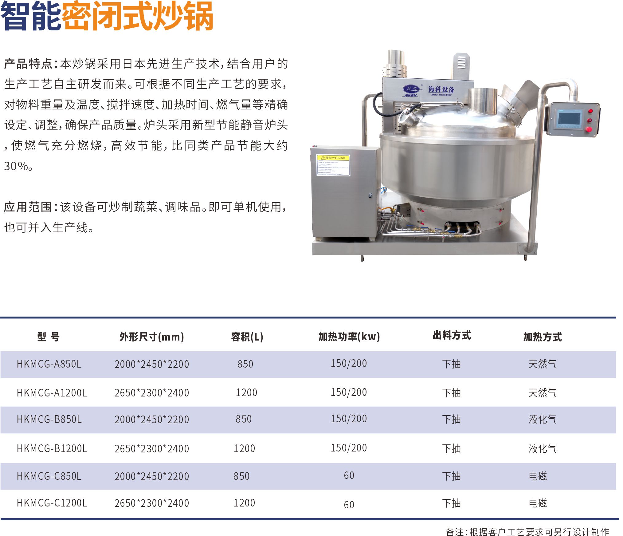 本炒鍋采用日本先進(jìn)生產(chǎn)技術(shù),結(jié)合用戶的生產(chǎn)工藝自主研發(fā)而來。可根據(jù)不同生產(chǎn)工藝的要求,對物料重量及溫度、攪拌速度、加熱時間、燃?xì)饬康染_設(shè)定、調(diào)整,確保產(chǎn)品質(zhì)量。爐頭采用新型節(jié)能靜音爐頭,使燃?xì)獬浞秩紵?,高效?jié)能,比同類產(chǎn)品節(jié)能大約30%。